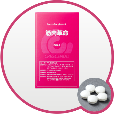 体を構成するさまざまな物質のなかでも特に重要なアミノ酸。「筋肉革命」はその中でも筋肉でしか吸収しない筋肉のためのアミノ酸「分岐鎖アミノ酸」を補充するサプリメントです。分岐鎖アミノ酸は口からしか摂取できない必須アミノ酸で、疲れの元となる乳酸をすばやく分解し疲れにくくしてくれます。